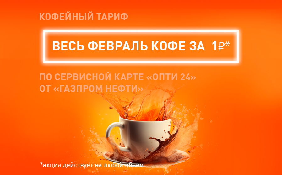 Вы можете приобрести кофе из списка акционного товара по цене 1 рубль при оплате по топливной карте «ОПТИ 24» на сети АЗС «Газпромнефть» при выполнении условий тарифа.